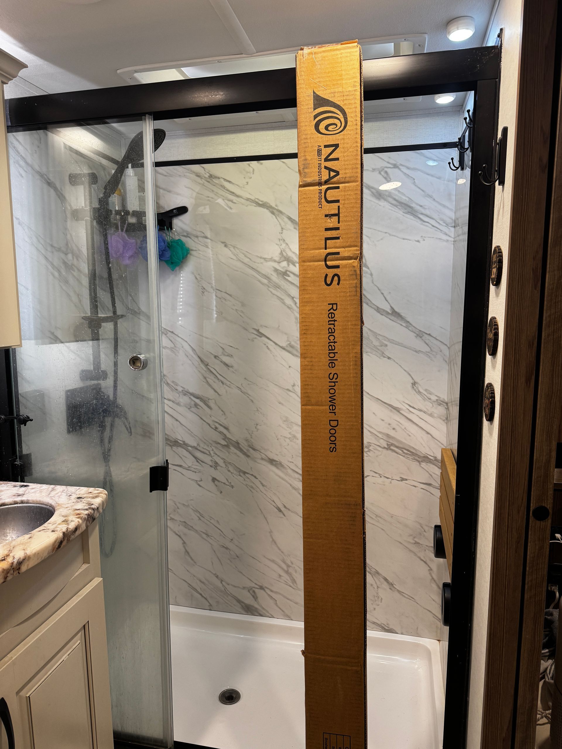 This actually isn’t our first Nautilus shower door. A few years ago, we installed one in our motorhome—and honestly, that’s when we fell in love with it.