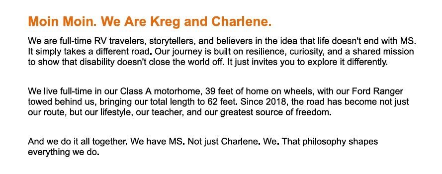 Living with MS means carrying something invisible that shapes every decision, every day, every plan. Full-time RV life means carrying a reality that most people cannot picture from the outside. Both of these communities know what it is to be looked at and not quite seen.